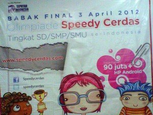 Pada saat babak Final siswa dipersyaratkan untuk membawa bukti bahwa yang bersangkutan adalah benar merupakan siswa peserta final dengan tingkat dan kelas yang dipersyaratkan dengan membawa rapor atau foto copy rapor yang dilegalisir . Selamat bagi siswa yang lolos ke babak Final dan selamat bertanding di Babak Final Olimpiade Speedy Cerdas tahun 2012. (Shd)