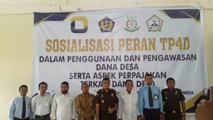 Sosialisasi peran TP4D dalam penggunaan dan pengawasan dana desa, serta aspek perpajakan terkait dana desa,  direncanakan akan dilaksanakan selama 2 hari ( 6 – 7 -11- 2019). Kegiatan ini diikuti  112 desa di 5 kecamatan. Terdiri dari Bandar, Bukit, Mesidah,Bener Kelipah dan Gajah Putih.