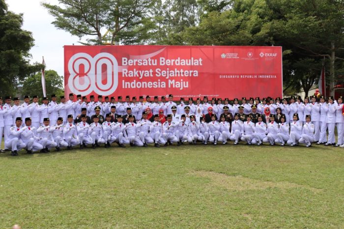 Ribuan pasang mata menyaksikan proses upacara, menyanyikan lagu Indonesia Raya dan memberikan hormat kepada merah putih sebagai bentuk penghormatan kepada pahlawan.