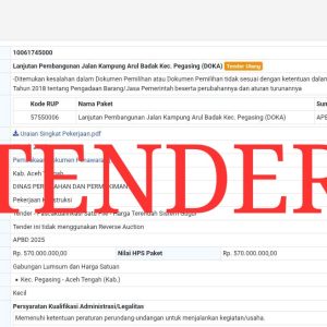 ACEH TENGAH Tender Secepat Kilat DAK Aceh Tengah 2025, ULP Terindikasi Tabrak RegulasiAceh Tengah, Gayo, Lintas Gayo Terbaru, Lintas Gayo Terkini, Politik, Sosial Budaya, Warta|Saturday, 5 July 2025Saturday, 5 July 2025by Lintas GayoTakengon | Lintasgayo.com – Ada fenomena yang menarik dari proses Pengumuman pemenang